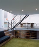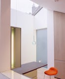 A converted mews house off Oxford Street retaining only the surrounding outer brick walls. The ground floor was formerly used as a five-space garage with a two bedroom flat above. Remodelled to become a family house with a roof garden. A large roof light spans across the building bringing light down to the ground floor.